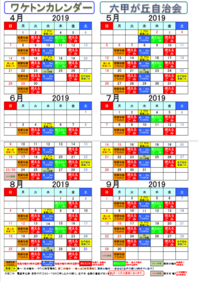 2019年度のワケトンカレンダーです、4月からの上期分と10月からの下期分を乗せます。